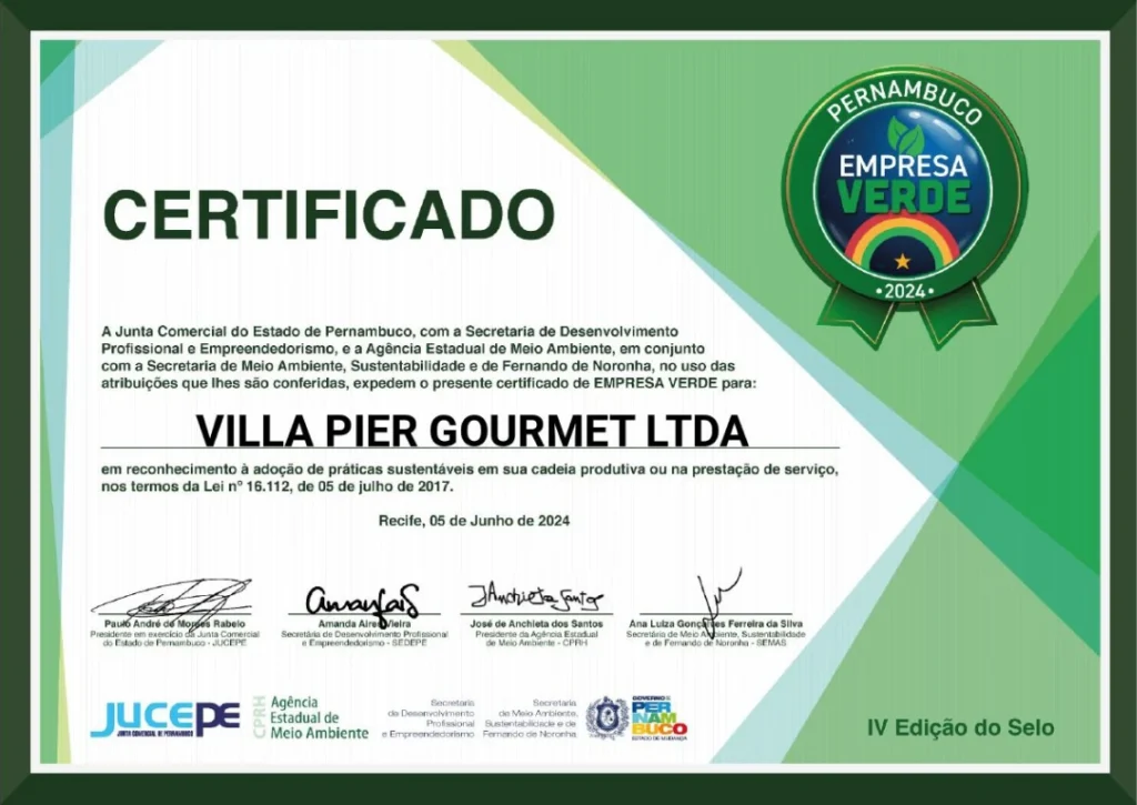 No Dia Internacional do Meio Ambiente de 2024, conquistamos o Selo de Empresa Verde do Estado de Pernambuco, único empreendimento da categoria no Estado.